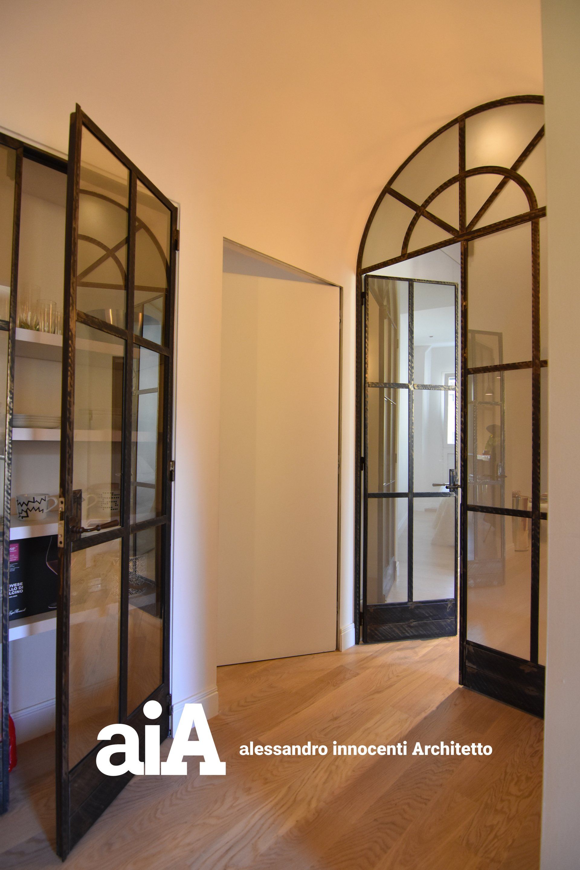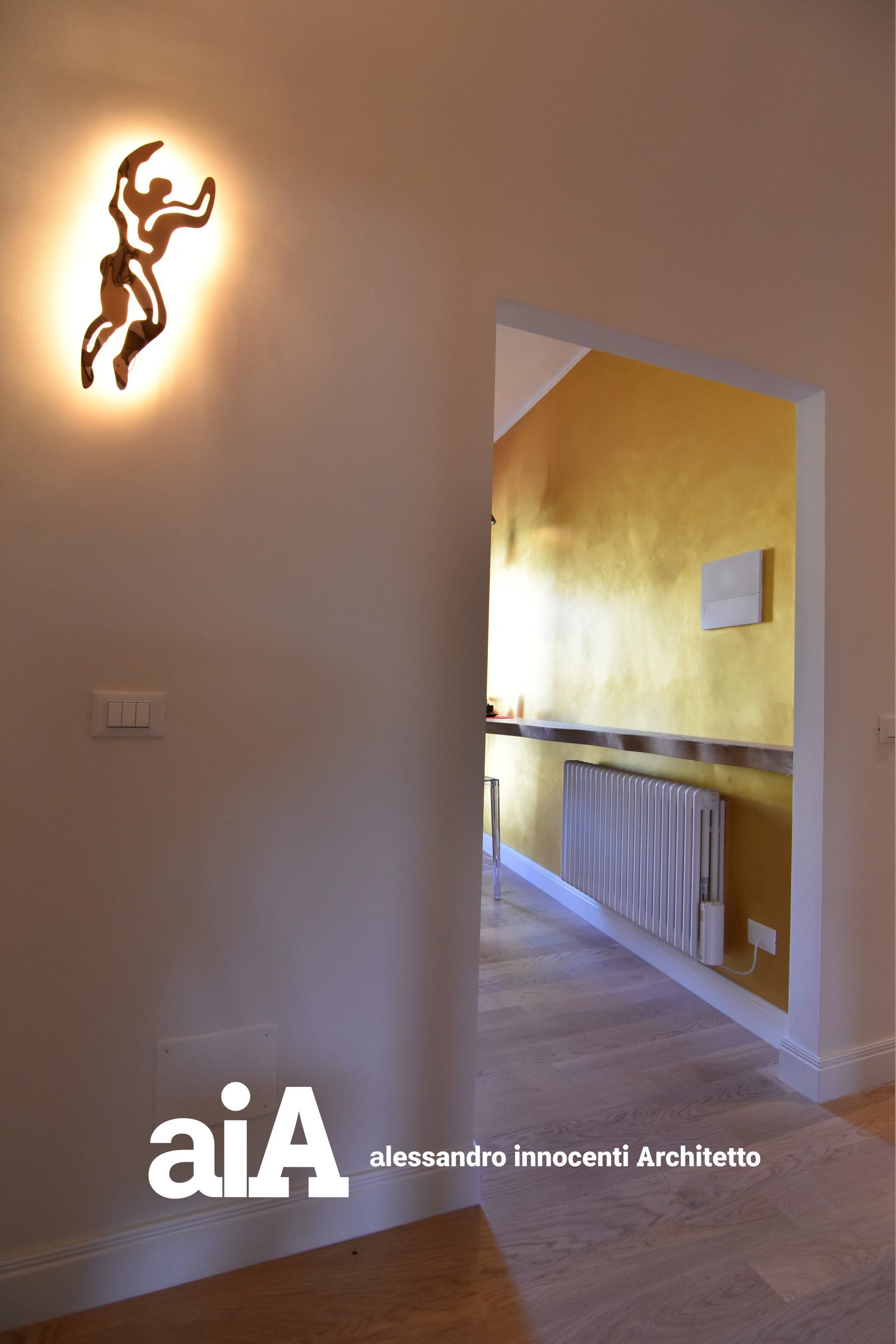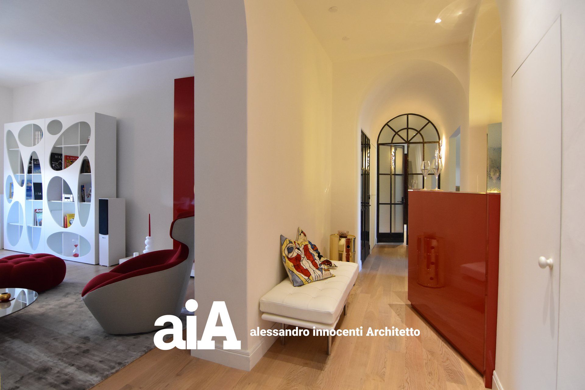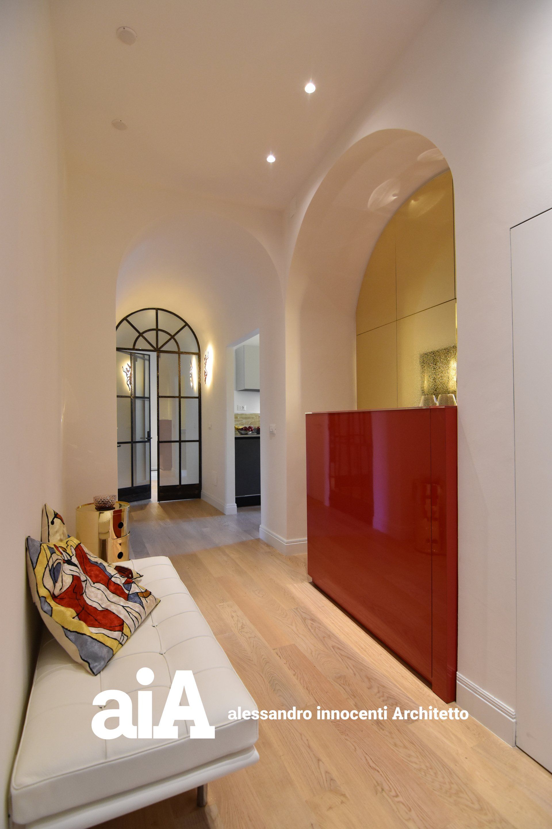 L'attico, all'interno di in un edificio di metà ottocento, è stato oggetto di una ristrutturazione che pur non modificando la distribuzione degli ambienti interni, attraverso il rinnovo delle finiture, degli infissi e di tutti gli arredi fissi e mobili, ha prodotto un rinnovamento formale dove la luce e l'armonia tra tradizione e contemporaneità sono gli elementi primari del progetto.