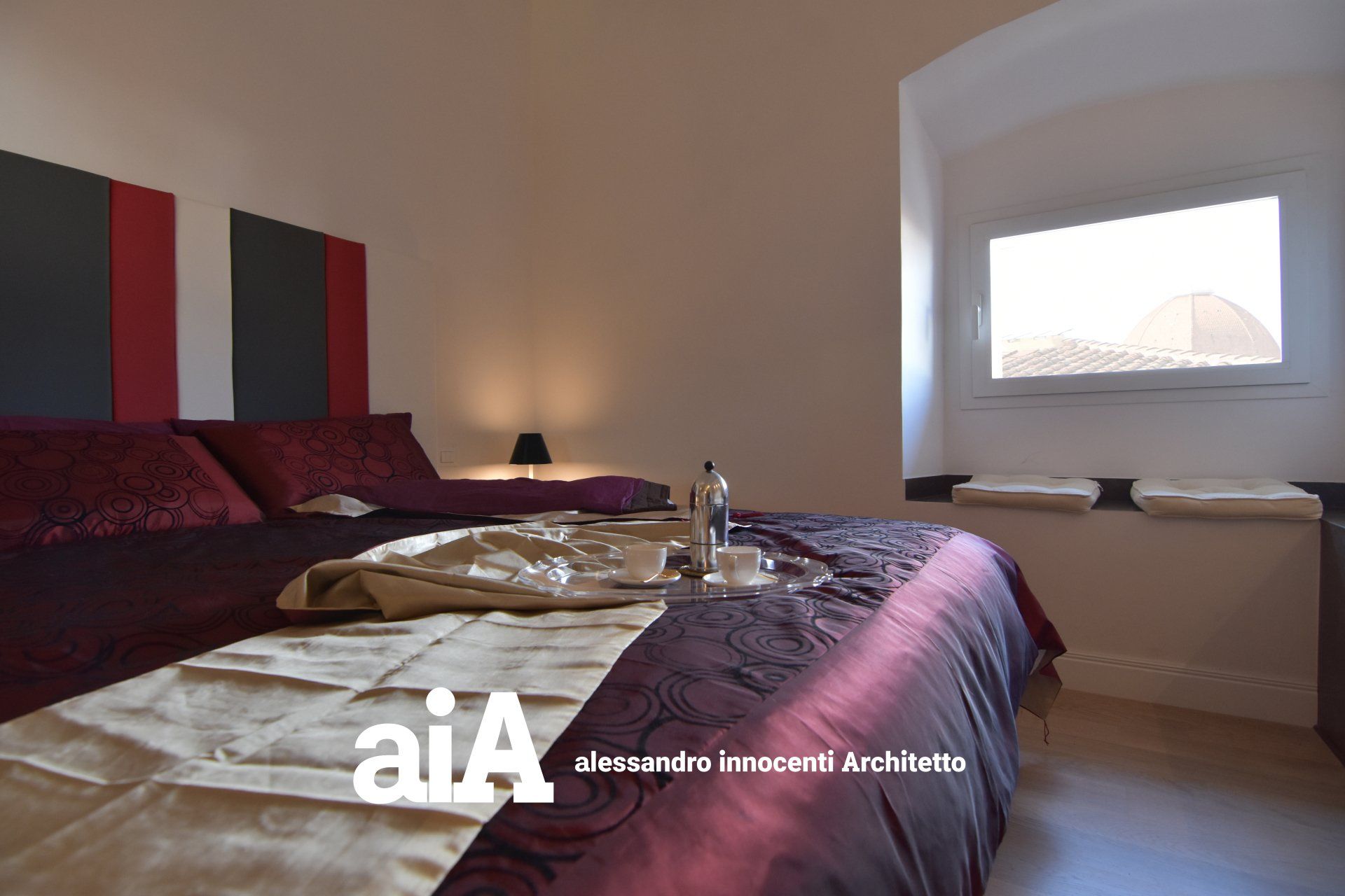 due camere da letto con bagni privati, una cucina più grande, l'utilizzo del colore rosso e dell'oro e lo sfruttamento massimo della luce