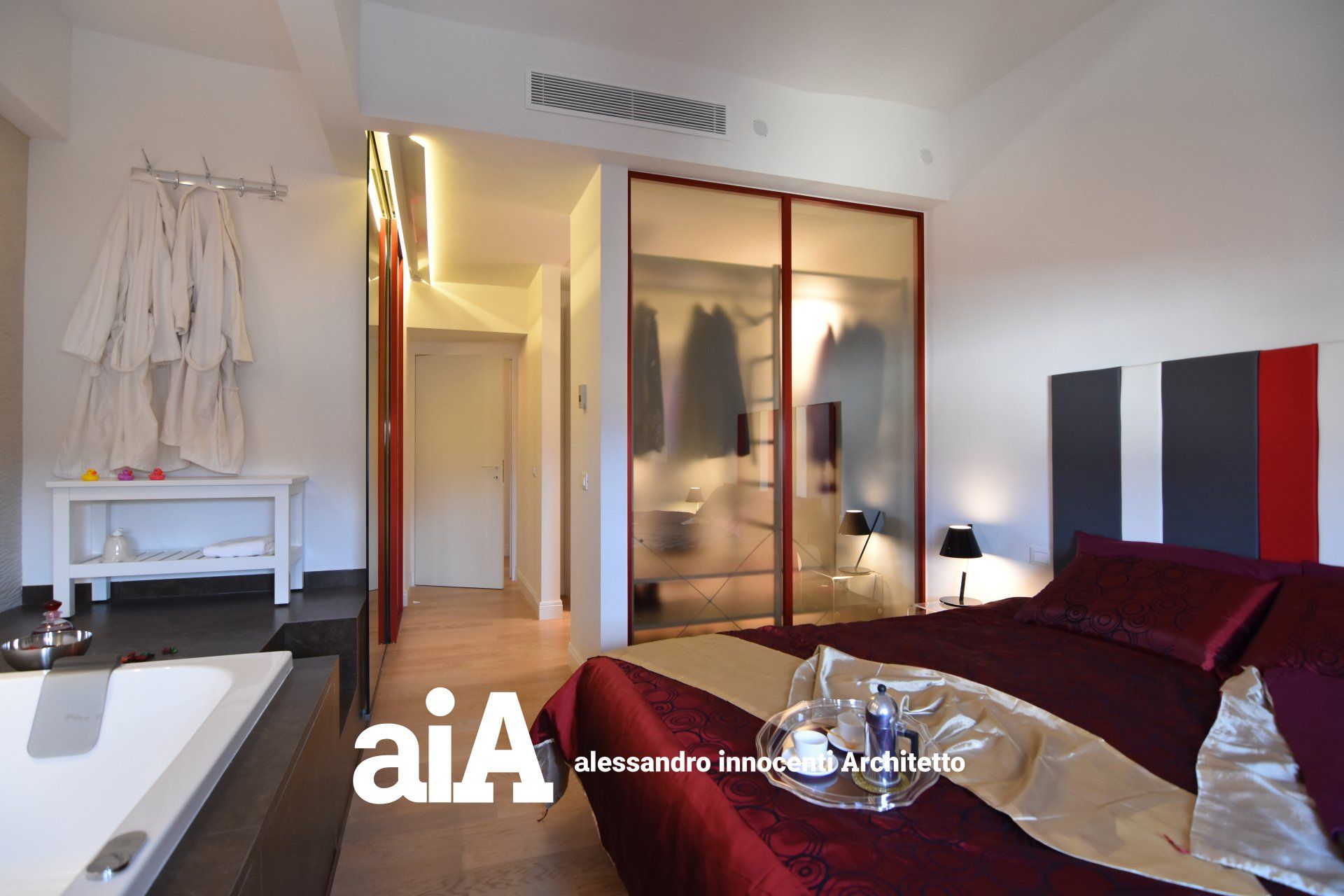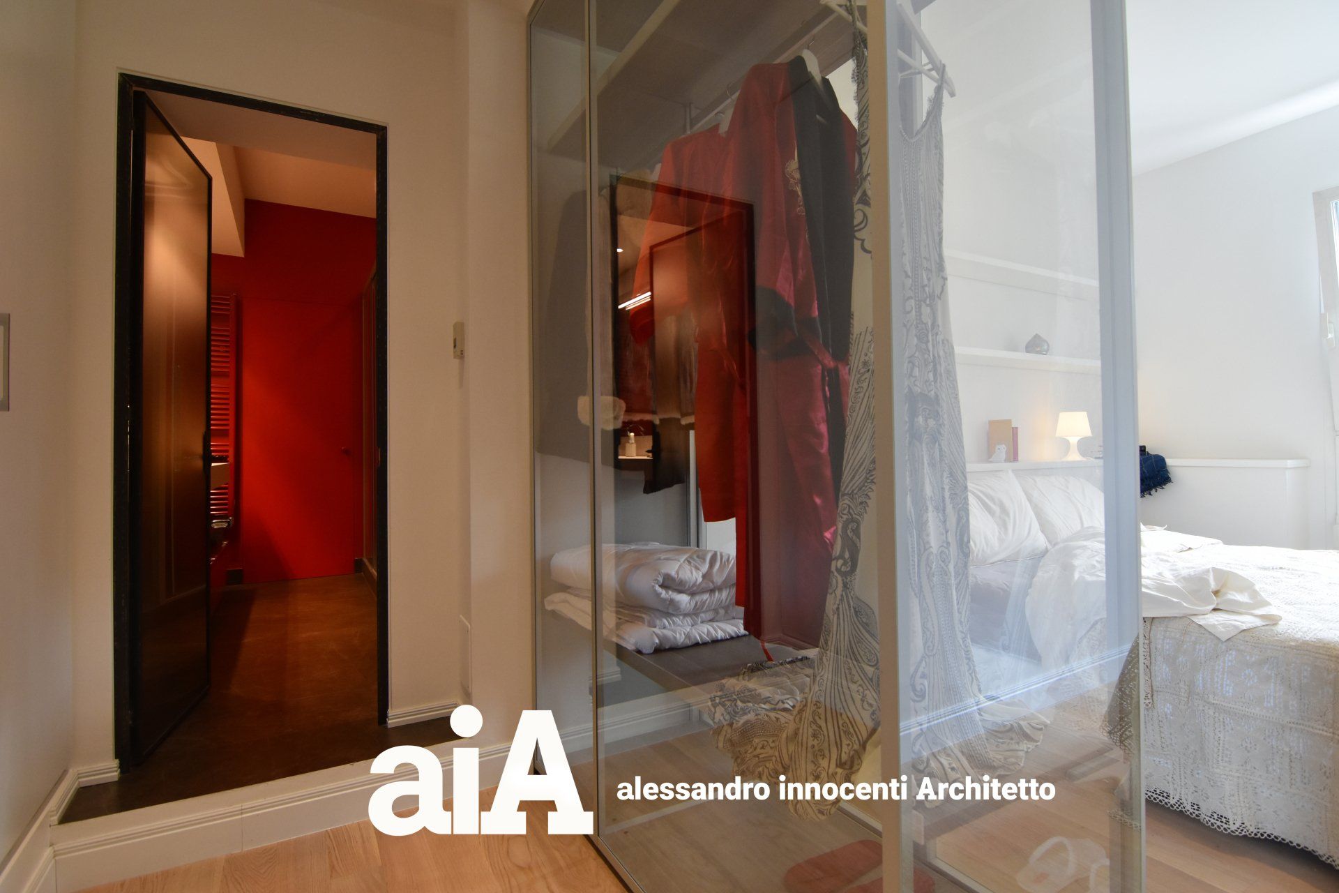 armadi a scomparsa, consente di accedere alla stanza da bagno lasciando una sufficiente privacy alla zona del letto.