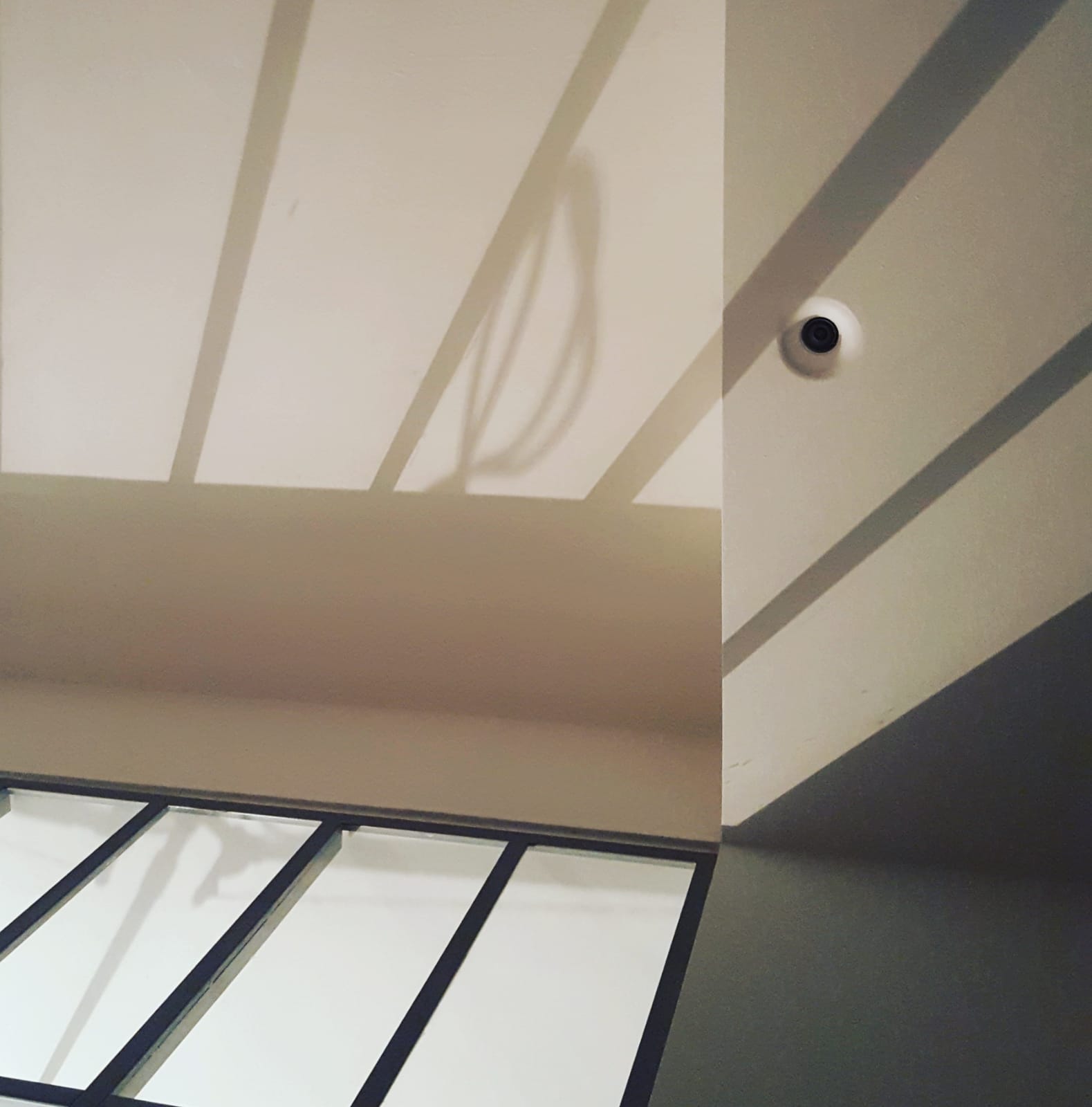 Le pareti sono diventate il supporto di una decorazione grafica, geometrica, asciutta e moderna: lo spazio è scandito dal ritmo serrato dei pieni e dei vuoti delle grandi finestre da dove la luce abbacinante entra copiosa.